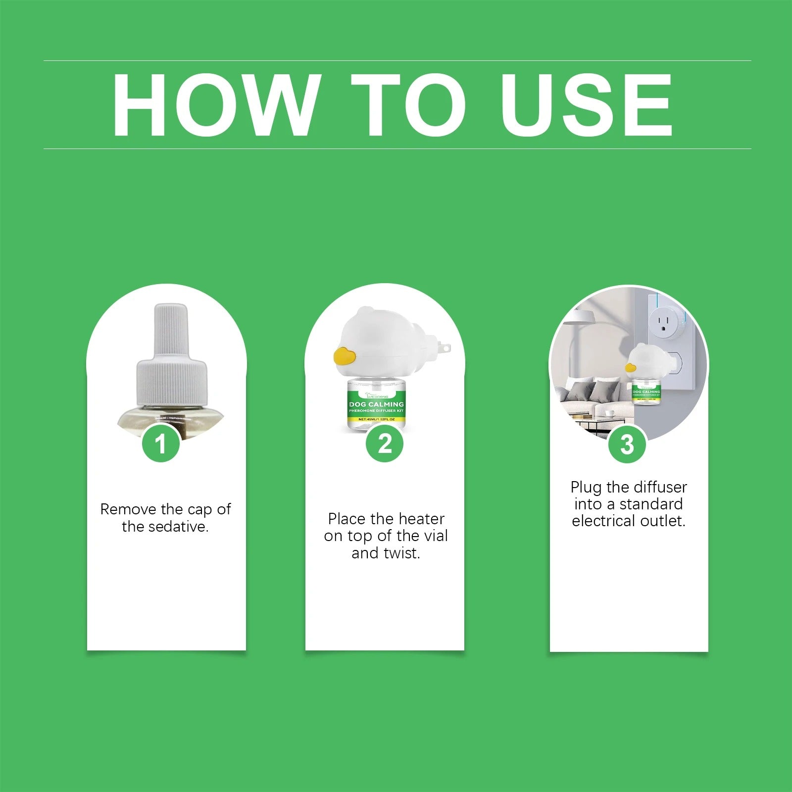 Help your anxious dog find calm with this comprehensive diffuser kit, designed to ease stress during transitions and challenging situations. The system releases natural calming pheromones that mimic the soothing compounds mother dogs produce, creating a reassuring environment for your pet. Ideal for new homes, vet visits, or separation anxiety, this kit includes everything needed for immediate use. Simply plug in the diffuser and let it work continuously to reduce nervous behaviours, excessive barking, and restlessness. A trusted solution for pet owners seeking a gentle, drug-free approach to canine anxiety management.